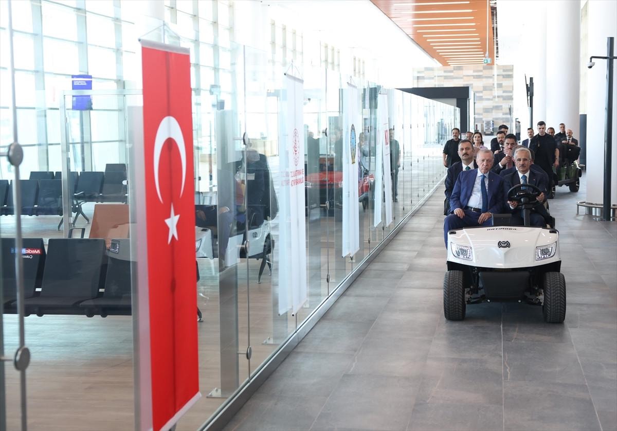 İncelemeler sonrasında törenin yapıldığı salona geçen Cumhurbaşkanı, burada katılımcılara hitap ettikten sonra yeni havalimanını hizmete açtı.