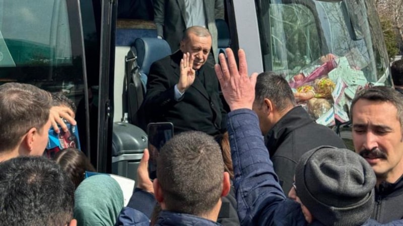 Cumhurbaşkanı Erdoğan da miting alanına gitmek üzere yola çıktı. Otobüs ile şehir merkezine hareket etti.