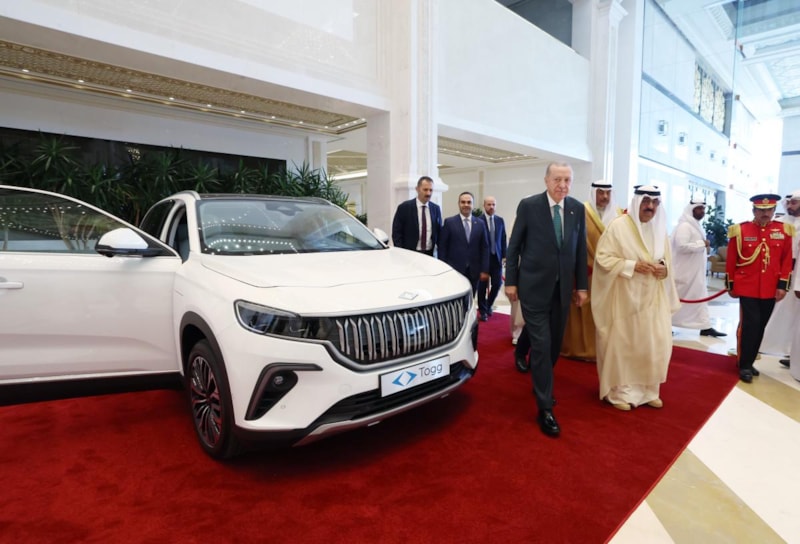 Cumhurbaşkanı Erdoğan, ziyareti sırasında Kuveyt Emiri meşal el-Ahmed el-Cabir es Sabah'a beyaz renkte Togg aracı hediye etti.