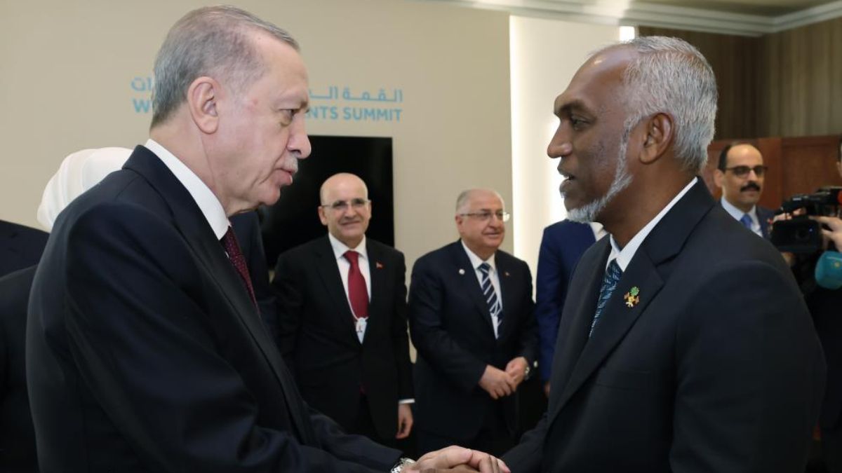 Cumhurbaşkanı Erdoğan, zirvedeki hitabının ardından Maldivler Devlet Başkanı Muhammed Muizzu ile ayaküstü görüşme gerçekleştirdi.