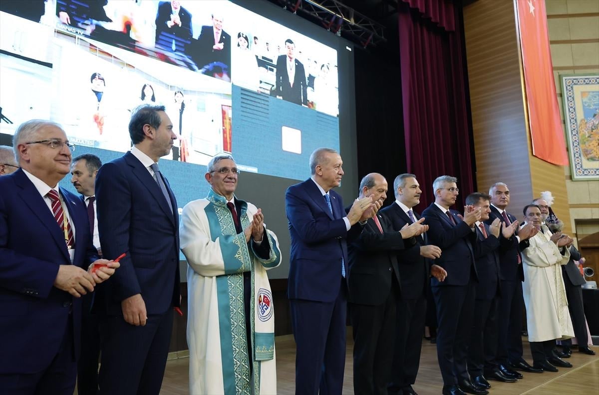 Aziz kardeşim, Cumhurbaşkanı Sayın Caparov'un davetine icabetle geldiğimiz ata yurdumuz Kırgız Cumhuriyeti'nde bugün sizlere hitap etmekten büyük bir memnuniyet duyuyorum. Toplu açılış törenimizin üniversitemiz için hayırlara vesile olmasını diliyor. Tüm öğrencilerimize ve hocalarımıza başarılar temenni ediyorum.