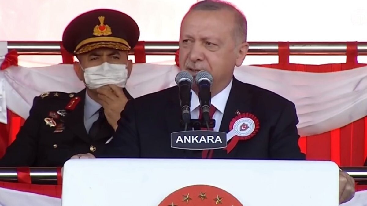 Törende bir konuşma yapan Erdoğan, Türkiye'nin Akdeniz ve Ege'de haklarını sonuna kadar korumakta kararlı olduğunu vurguladı.