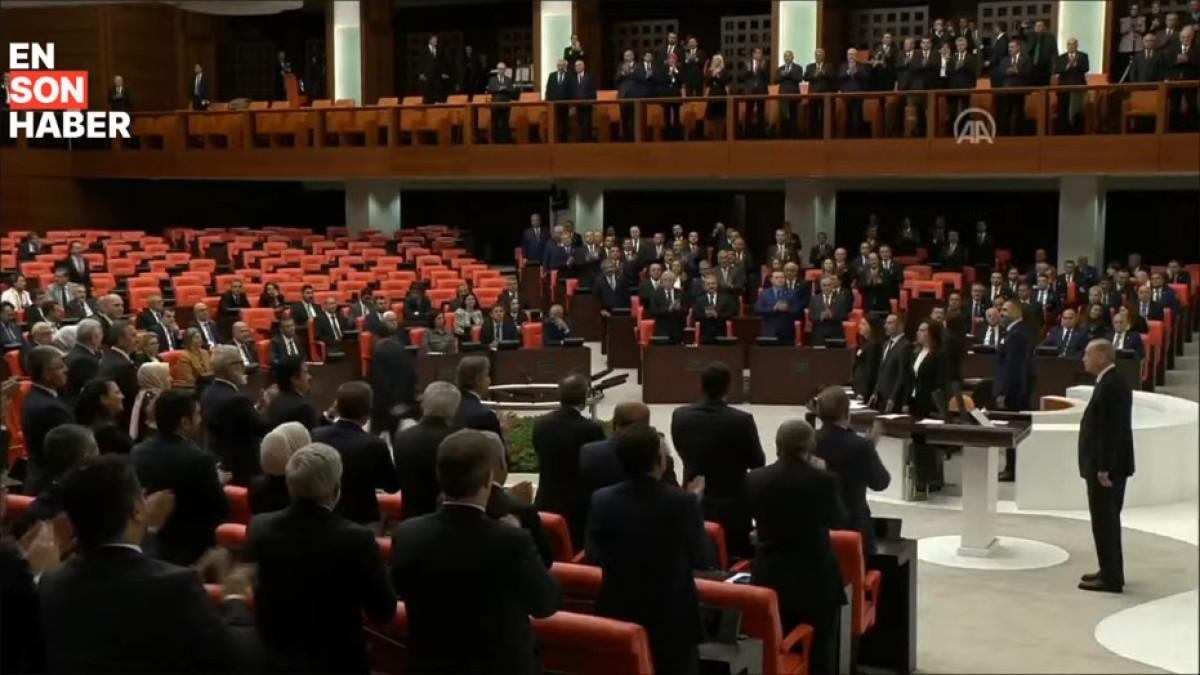 Cumhurbaşkanı Erdoğan Meclis Genel Kurulu'na giriş yaptığı sırada muhalefet vekilleri aynı tavrını sürdürdü.