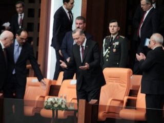 Cumhurbaşkanı Erdoğan, AK Parti Genel Başkanı ve Başbakan Ahmet Davutoğlu'nun yemin etmesinden sonra Meclis'ten ayrıldı.