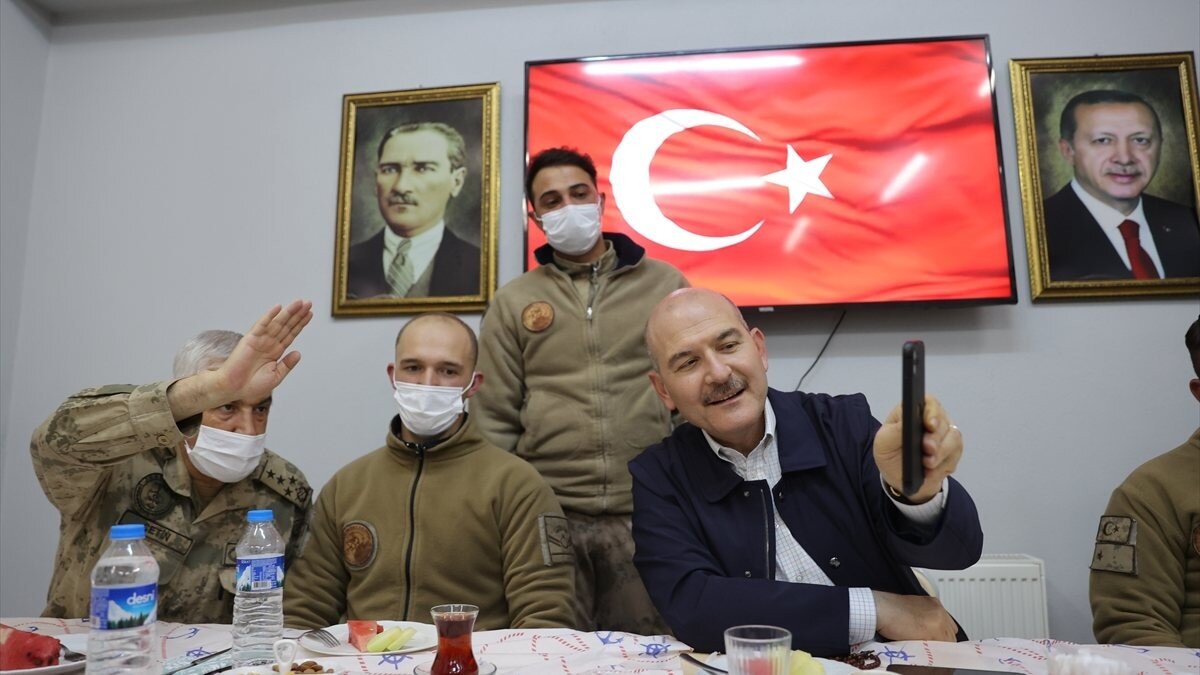 Mehmetçik ile bir araya gelen Bakan Soylu, Cumhurbaşkanı Recep Tayyip Erdoğan'ı telefonla aradı.