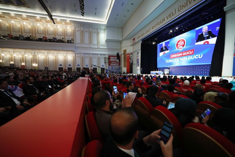 Öte yandan emeklilere de seçim sonrasında yeni müjdeler olduğunu duyuran Erdoğan, "Seçimden sonra, yeni Meclisin yasama faaliyetlerine başlamasıyla 7 bin 500 liranın üzerinde emekli maaşı alan vatandaşlarımızı da sevindirecek bir güzel haberi inşallah milletimizle paylaşacağız." dedi.