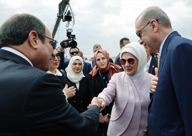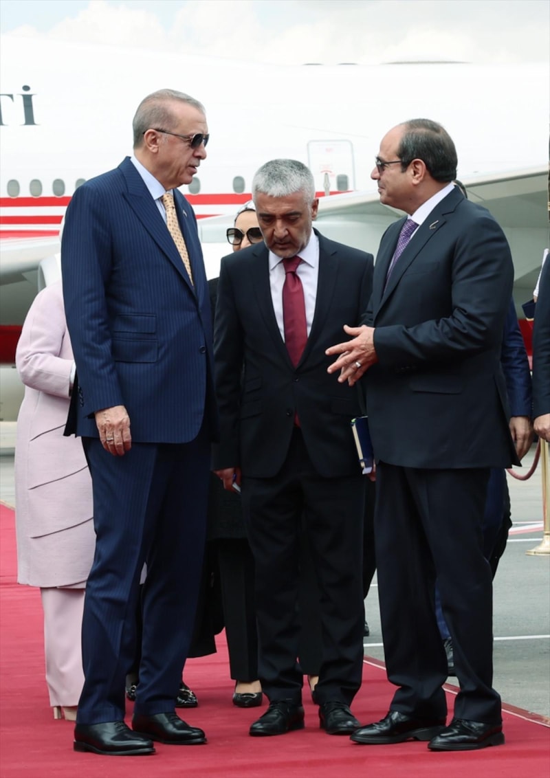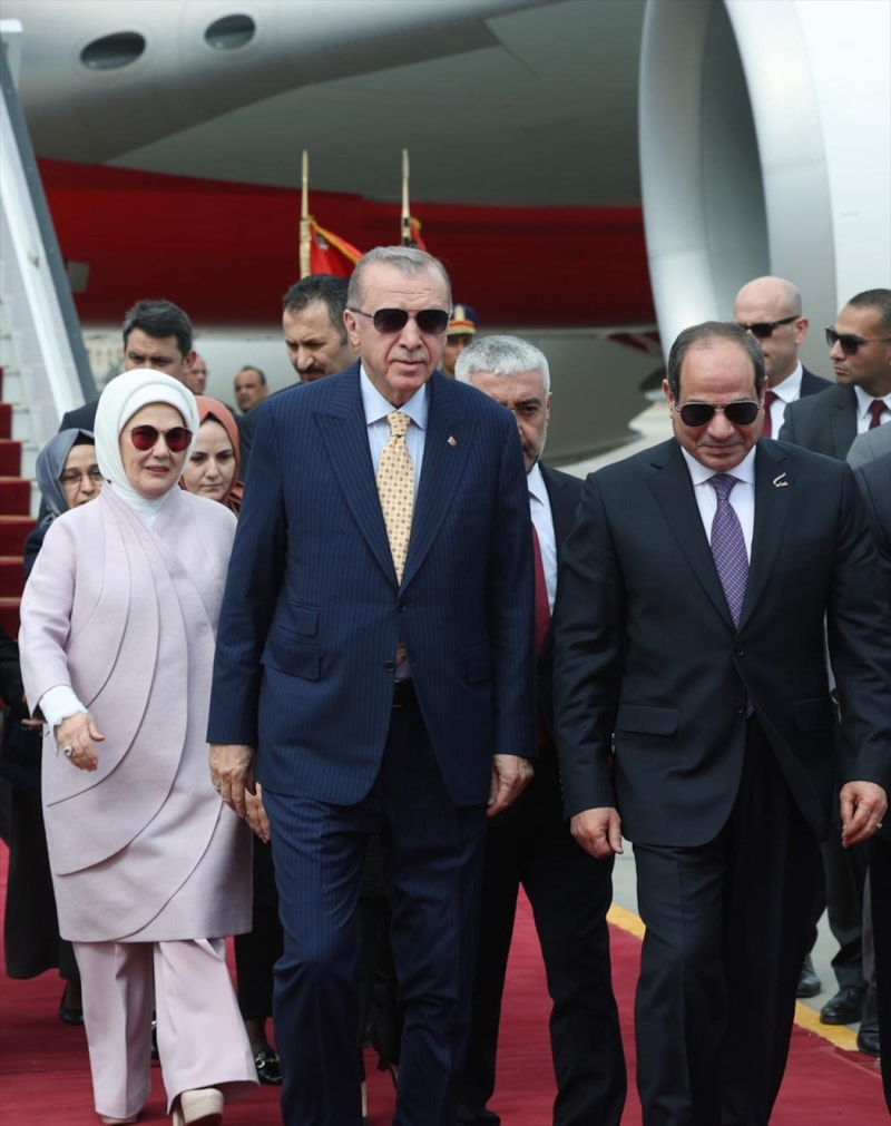 Cumhurbaşkanı Recep Tayyip Erdoğan, Mısır ziyaretini gerçekleştirmek üzere Kahire'ye gelirken Erdoğan'ı mevkidaşı Sisi, havalimanında karşıladı.