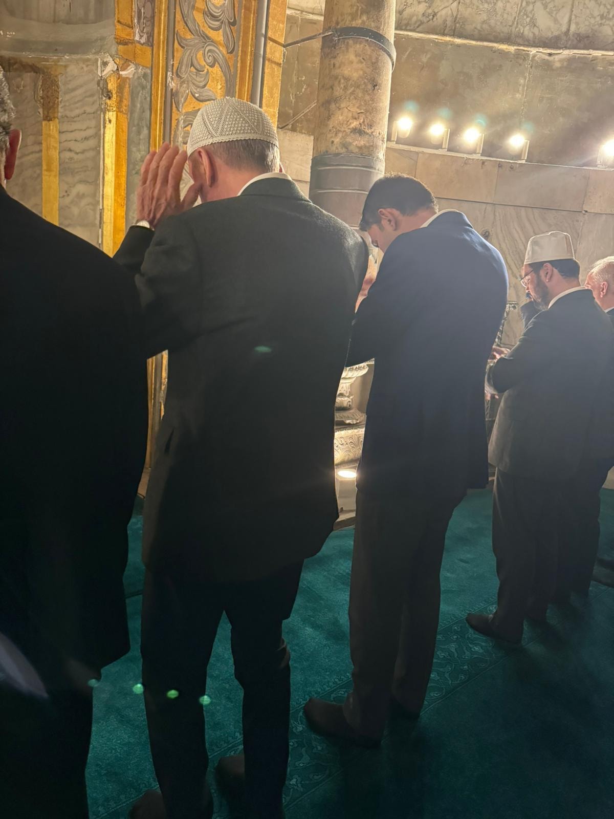 İftardan sonra cemaatle birlikte akşam namazını Ayasofya Camii'nde kılan Cumhurbaşkanı Erdoğan, seçim öncesinde son duasını da burada yapmış oldu..