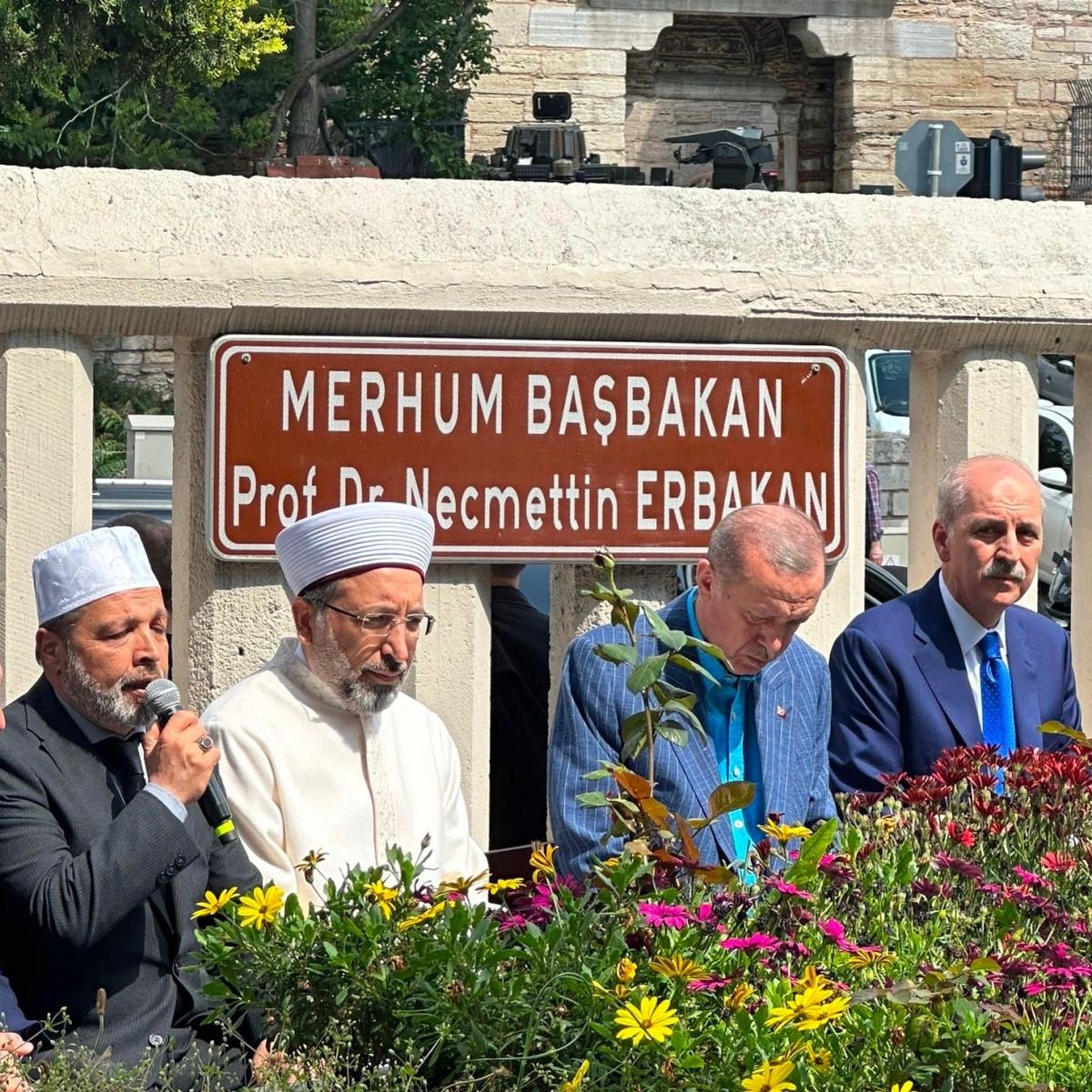 Erdoğan, Adnan Menderes'in kabri başından ayrıldıktan sonra Necmettin Erbakan'ın kabrine geçti.