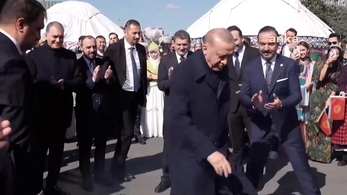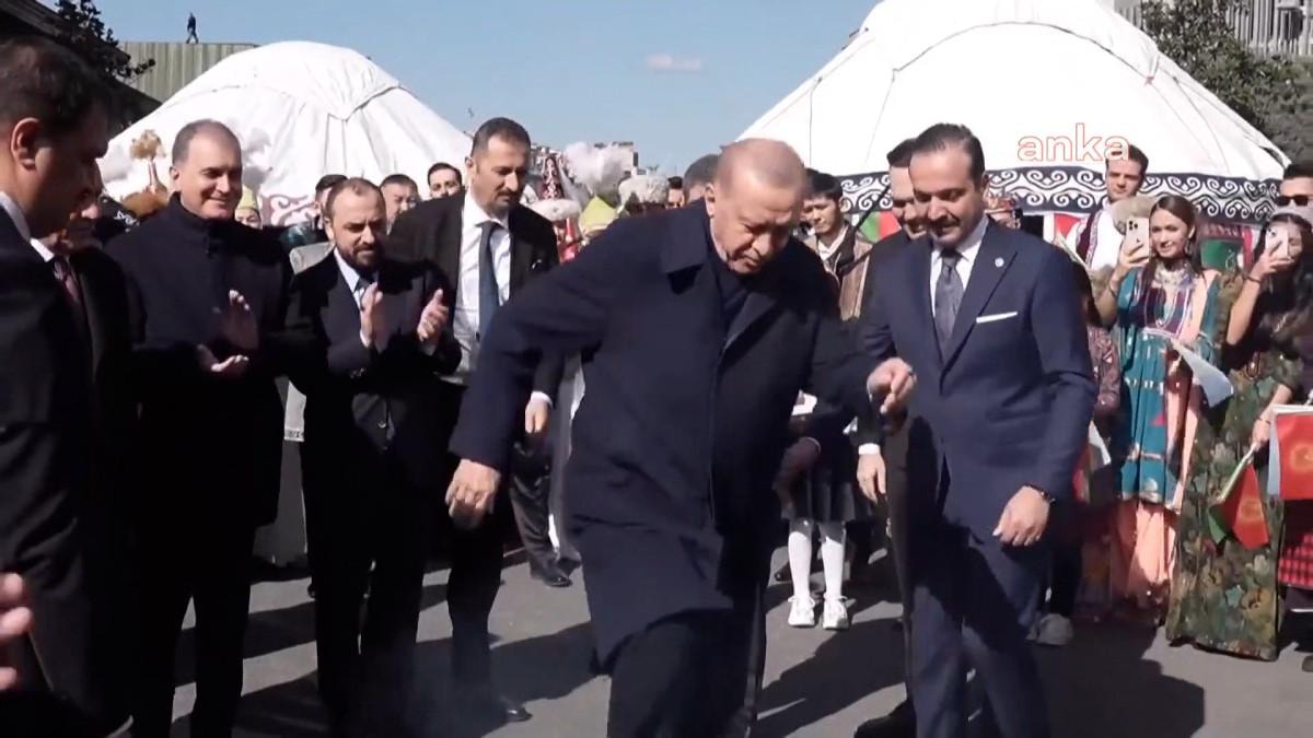 Nevruz ateşini yakmadan önce Cumhurbaşkanı Erdoğan, dışarıdaki yoğun kalabalıkla selamlaştı.