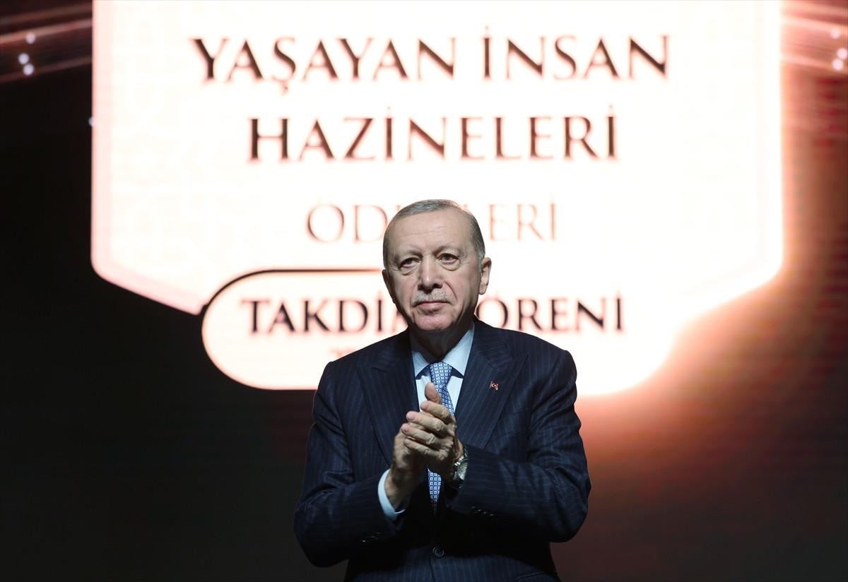Burada değerlendirmelerde bulunan Cumhurbaşkanı Erdoğan, kültür miraslarının önemine dikkat çekerek "Kültürümüzü yaşatan, geniş kitlelere ulaştıran ustalarımızı rahmetle yad ediyorum." dedi.