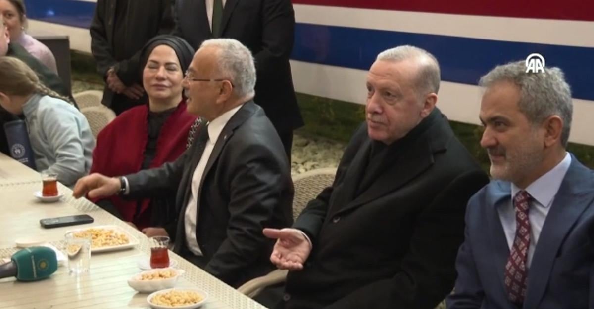 Bir gencin, "1996 doğumluyum, siz İstanbul Büyükşehir Belediye Başkanıyken, babam sizi çok sevdiği için adımı Tayyip koymuş, aynı zamanda gençlik kolları başkan yardımcısıyım" sözleri üzerine Erdoğan, "Senin adın Tayyip mi? Gençler başımıza iş aldık." şeklinde espriyle yanıt verdi.