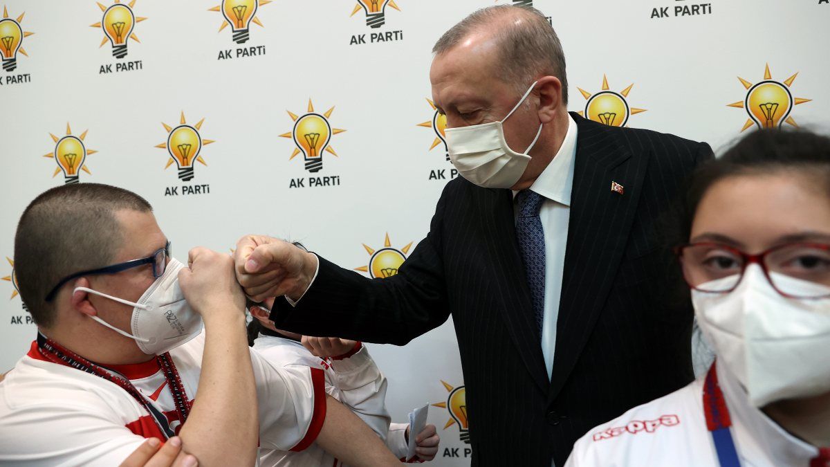 Özel sporcuları kabul eden Cumhurbaşkanı Erdoğan, her biri ile tek tek ilgilendi, doyasıya sarıldı.