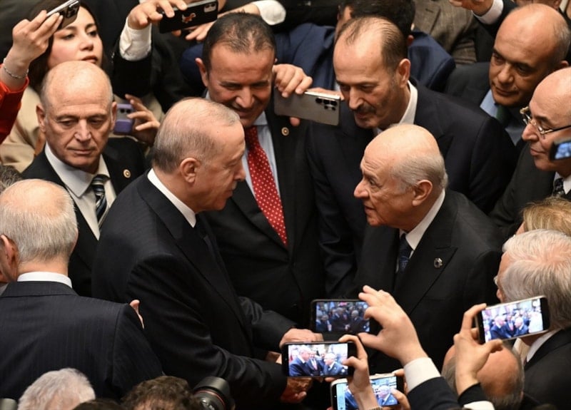 Özellikle MHP Lideri Bahçeli ile sohbetinde ortaya çıkan samimi anlar objektiflere yansırken DEM Parti eş Genel Başkanı Tuncer Bakırhan ile diyaloğu da gündem oldu.