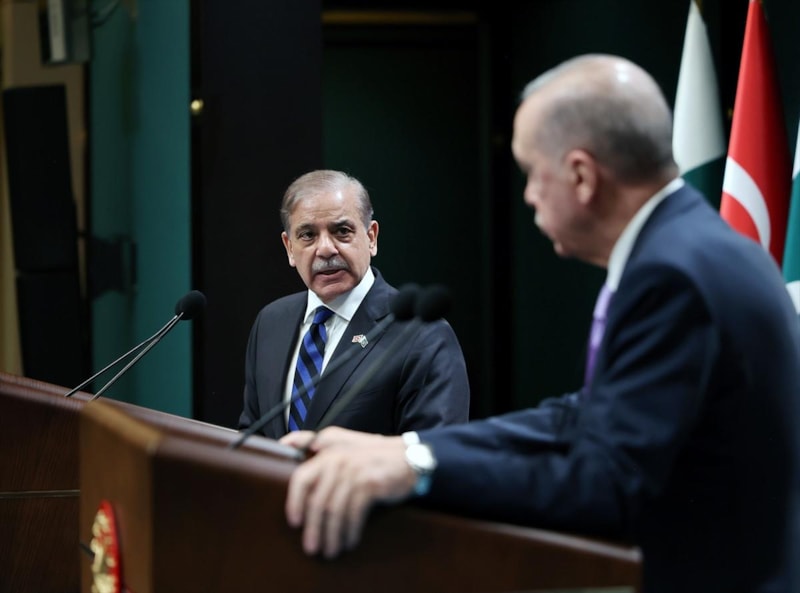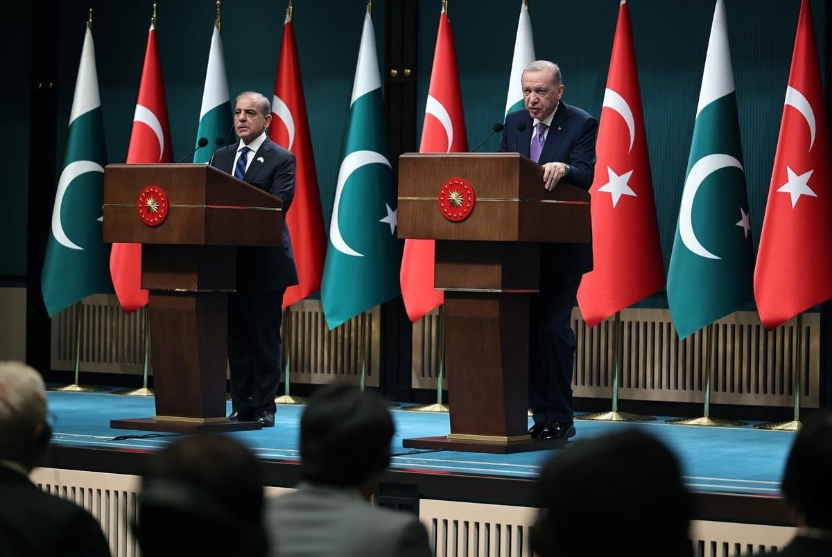 Baş başa yapılan görüşmeden sonra birlikte akşam yemeği yiyen Cumhurbaşkanı Erdoğan ile Pakistan Başbakanı Şerif, yemeğin ardından ortak basın toplantısı düzenledi.