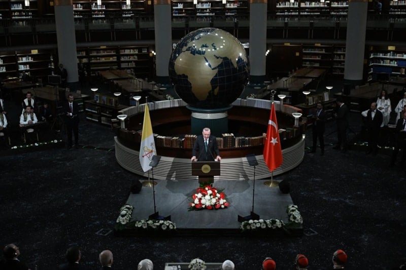 Toplantıda konuşan Erdoğan, Türkiye ile Vatikan arasındaki diplomatik ilişkilere değinerek, karşılıklı anlayış içinde güçlenmesini temenni ettiğini belirtti.