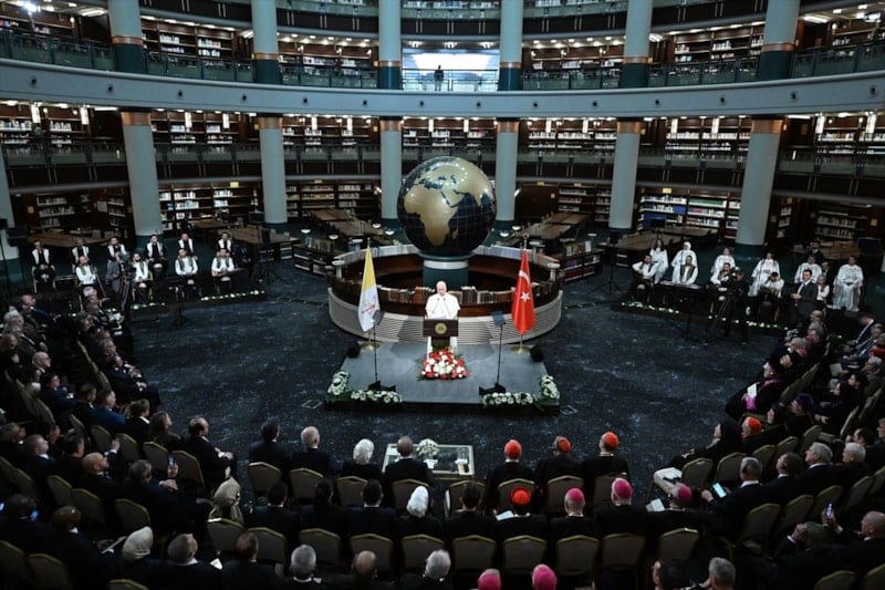 Başta bu salondan yansıyanlar olmak üzere ziyaret boyunca Türkiye'den verilecek mesajların Türk-İslam dünyasına, tüm Hristiyan coğrafyasına ulaşacağına, dünyada barış umutlarını daha da artıracağına yürekten inanıyorum.