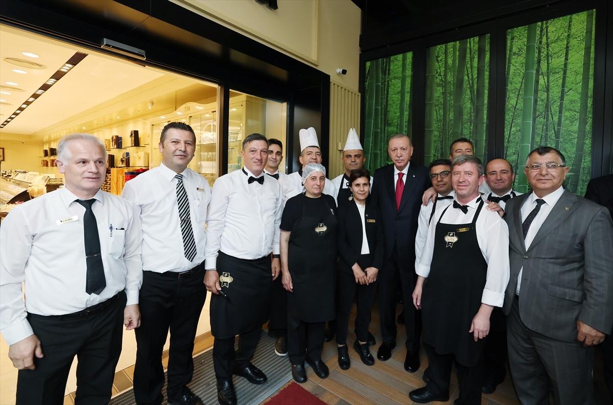 Cumhurbaşkanı Recep Tayyip Erdoğan, Ankara'da bir pastaneyi ziyaret ederek vatandaşlarla sohbet etti, fotoğraf çektirdi.