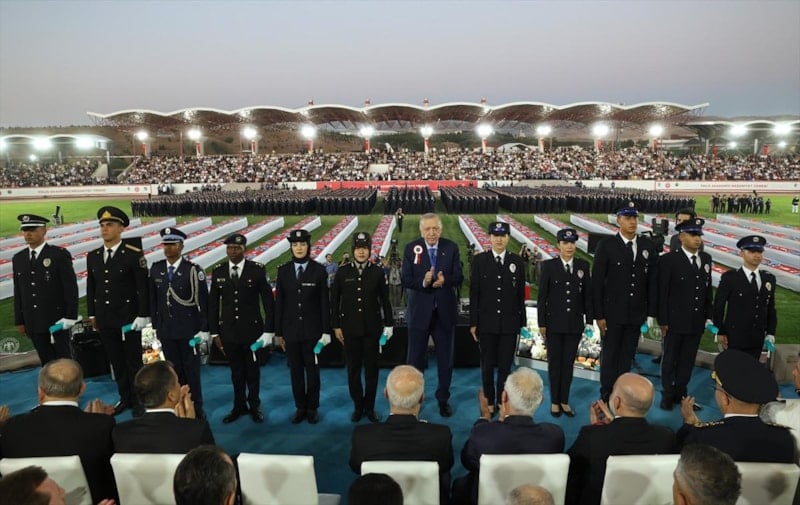 Görevlerine başlayacak polislerimizden şu hakikati asla unutmamalarını istiyoruz. Sevgili genç kardeşlerim, üzerinizdeki üniformalar hiç tereddüt etmeden şehadete yürüyen yiğitlerin kıyafetidir. Taşıdığınız kimlikler bu ülkenin huzur ve emniyetinin tapu senetleridir. İstisnasız hepiniz, güvenlik güçlerimizin her bir mensubu, bu milletin göz bebeğidir, geleceğimizin güvencesidir.