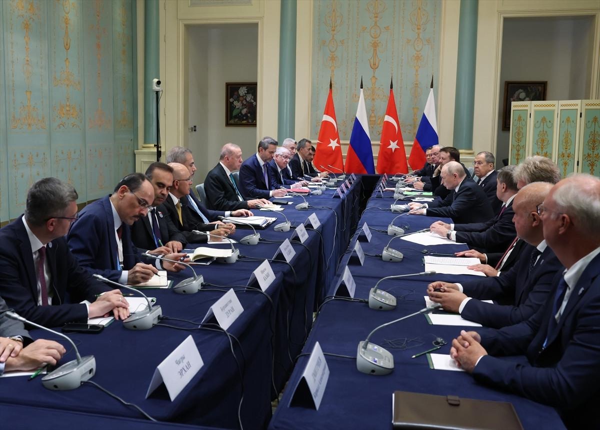 Cumhurbaşkanı Erdoğan ile Rusya Devlet Başkanı Vladimir Putin arasındaki görüşme başladı.
