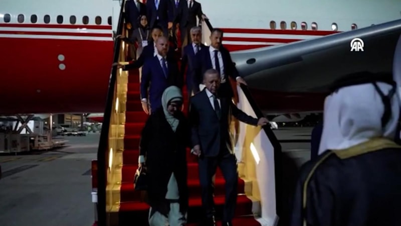 Cumhurbaşkanı Erdoğan ile eşi Emine Erdoğan, Dışişleri Bakanı Hakan Fidan, Enerji ve Tabii Kaynaklar Bakanı Alparslan Bayraktar, Hazine ve Maliye Bakanı Mehmet Şimşek, Milli Savunma Bakanı Yaşar Güler, Sanayi ve Ticaret Bakanı Mehmet Fatih Kacır, Ticaret Bakanı Ömer Bolat, AK Parti Genel Başkan Yardımcısı ve Parti Sözcüsü Ömer Çelik, AK Parti Genel Başkan Yardımcısı ve Sağlık Politikaları Başkanı Halit Yerebakan, AK Parti Grup Başkanvekili Özlem Zengin, Milli İstihbarat Teşkilatı (MİT) Başkanı İbrahim Kalın, Cumhurbaşkanlığı İletişim Başkanı Burhanettin Duran, Cumhurbaşkanlığı Savunma Sanayii Başkanı Haluk Görgün ve Cumhurbaşkanı Dış Politika ve Güvenlik Başdanışmanı Akif Çağatay Kılıç da Doha'ya geldi.