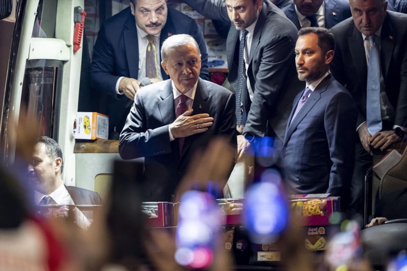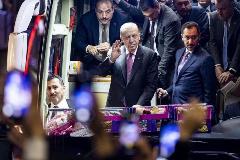 Kendisiyle fotoğraf çektirmek isteyenleri de kırmayan Cumhurbaşkanı Erdoğan, otobüsten inerek poz verdi.