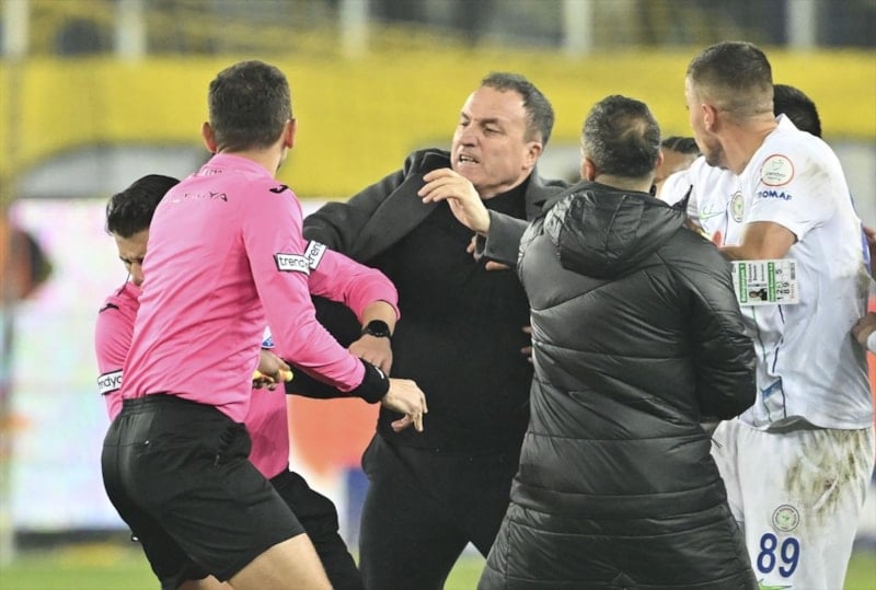 Ankaragücü Başkanı Faruk Koca, sahaya inerek Meler’e yumruk attı. Ardından aldığı darbelerle yere yığılan Meler, tekmelenmeye devam etti.