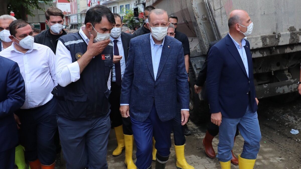 Erdoğan, beraberindeki İçişleri Bakanı Süleyman Soylu, Çevre ve Şehircilik Bakanı Murat Kurum, Enerji ve Tabi Kaynaklar Bakanı Fatih Dönmez, Ticaret Bakanı Mehmet Muş, Ulaştırma ve Altyapı Bakanı Adil Karaismailoğlu ve diğer yetkililer ile birlikte incelemelerde bulundu.