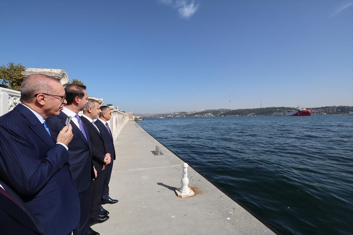 Saat 14.30’da Cumhurbaşkanlığı Dolmabahçe Ofisi önüne ulaşan gemi için, Cumhurbaşkanı Recep Tayyip Erdoğan’ın katılımıyla bir uğurlama töreni düzenlendi. Tören sırasında Cumhurbaşkanı Erdoğan, Boğaz’dan geçen geminin mürettebatına selamlarını iletti.