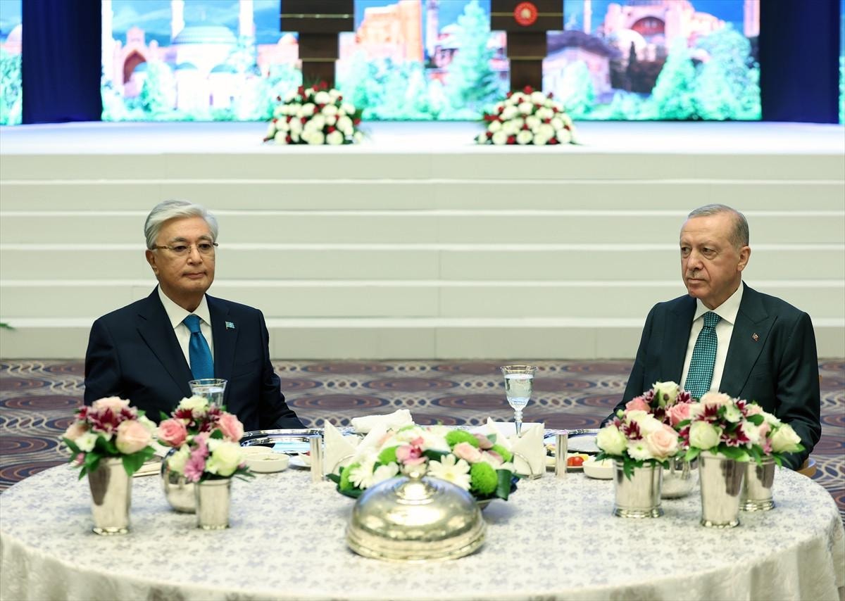 Cumhurbaşkanı Recep Tayyip Erdoğan, Cumhurbaşkanlığı Külliyesi Beştepe Millet Sergi Salonu'nda Kazakistan Cumhurbaşkanı Kasım Cömert Tokayev'in onuruna yemek verdi.