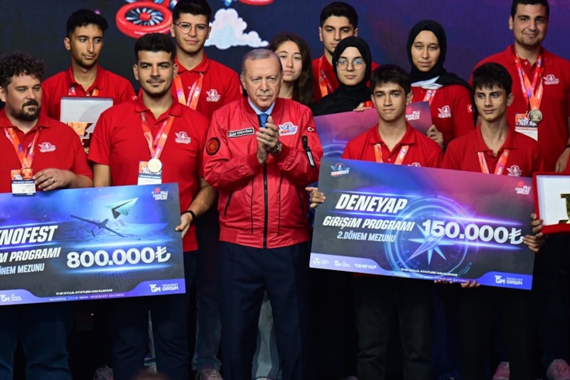 Sevgili gençler, şunu da özellikle belirtmek isterim. Bugün karada, havada ve denizde kendi ürettiğimiz ürün ve sistemlerle yeni başarı hikayeleri yazıyoruz. Savunma ihracatında dünyanın en büyük 11. ülkesi konumundayız. İHA ve SİHA teknolojisinde dünyada ilk üçteyiz. Tasarımda, seri üretimi, kendi savaş gemisini denize indiren 10 ülkeden biriyiz.