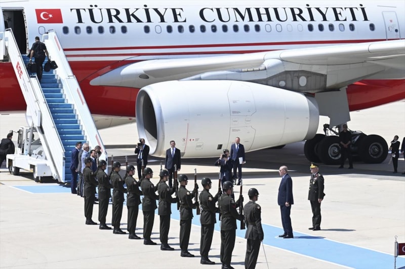 Apronda askeri tören kıtasını selamlayan Erdoğan'ı, Cumhurbaşkanı Yardımcısı Cevdet Yılmaz, İstanbul Valisi Davut Gül ve diğer yetkililer uğurladı.