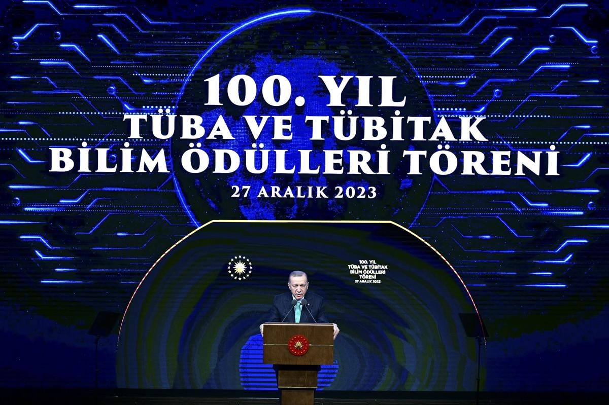 Cumhurbaşkanı Recep Tayyip Erdoğan, Beştepe Millet Kongre ve Kültür Merkezi'nde düzenlenen 100. Yıl TÜBİTAK ve TÜBA Bilim Ödülleri Töreni'ne katıldı.