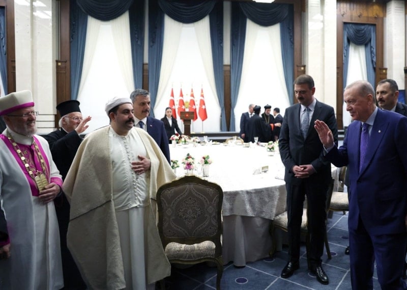 Bu akşam da aynı sofranın etrafında Rum Ortodoks, Ermeni, Musevi, Süryani, Katolik ve farklı cemaatlerin kıymetli temsilcileri buluşuyor. Davetimize icabet ettiğiniz için her birinize ayrı ayrı teşekkür ediyorum. Burada şunu özellikle ifade etmek istiyorum, sizler sadece kendi cemaatlerinizin değil aynı zamanda Türkiye'nin çok kültürlü ve çok inançlı toplumsal yapısının da temsilcilerisiniz. Bu toprakların mayasında birlikte yaşama kültürü vardır. Bu toprakların ruhunda karşılıklı saygı vardır. Bu toprakların hafızasında kardeşlik vardır. Yunus Emre bunu o arı, duru Türkçesiyle şöyle ifade ediyor, 'Dört kitabın manasını okudum. Ezber ettim, aşka gelince gördüm bir uzun heceymiş.' Meselenin özü, özeti, esası işte budur. Mesele yaratılanı yaratandan ötürü sevebilmektir. Allah'ın yarattığı insanları kategorilere ayırmak, ırkçılık yapmak, mezhep ve meşrebine göre ötekileştirmek kimsenin haddi de hakkı da değildir.