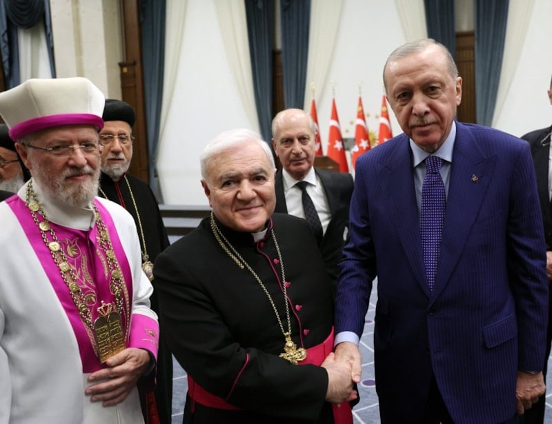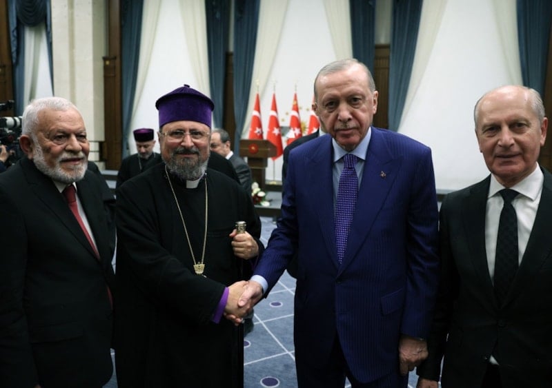 İstanbul Yeşilköy'de ibadete açtıkları Süryani Kilisesi'nin, Türkiye'deki dini özgürlük ortamının güçlü bir sembolü olduğunu dile getiren Erdoğan, "Farklı inançlara mensup vatandaşlarımızın akademide, bürokraside, iş dünyası ve siyasette aktif olmalarından büyük bir memnuniyet duyuyoruz. Yakın zamanda Ermeni kökenli bir vatandaşımızın kaymakam olarak atanması ve Ermeni milletvekillerimizin Türkiye Büyük Millet Meclisi'nde uzun süredir görevde bulunması bunun en güzel örneklerinden biridir. İnşallah önümüzdeki dönemde sizlerle el birliği ve gönül birliği içerisinde bu iklimi daha da güzelleştirmeye devam edeceğiz." ifadelerini kullandı.