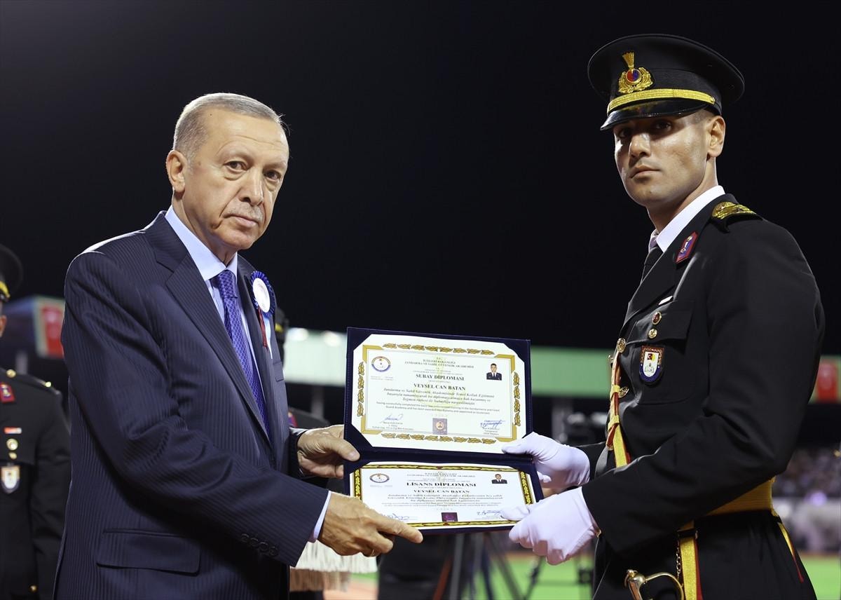 Cumhurbaşkanı Erdoğan, bugün 690 erkek, 82 kadın, 19 misafir olmak üzere toplam 791 subay ile 2 bin 700 erkek, 319 kadın astsubay öğrenciyi mezun etmenin sevincini yaşadıklarını belirterek, böylece farklı branş, uyruk ve rütbelerde toplam 3 bin 810 öğrencinin akademiden mezun edildiğini aktardı.