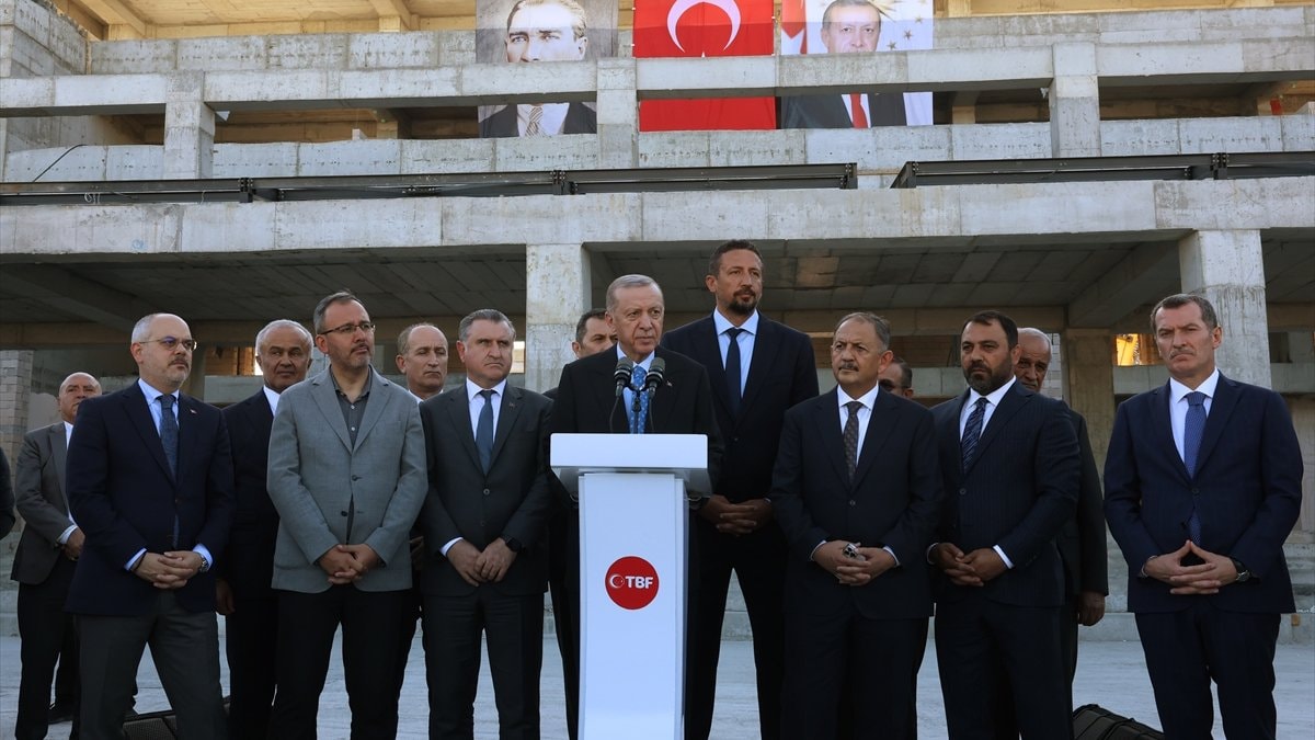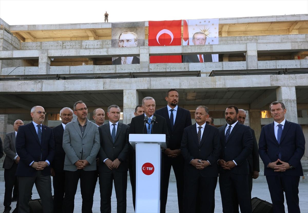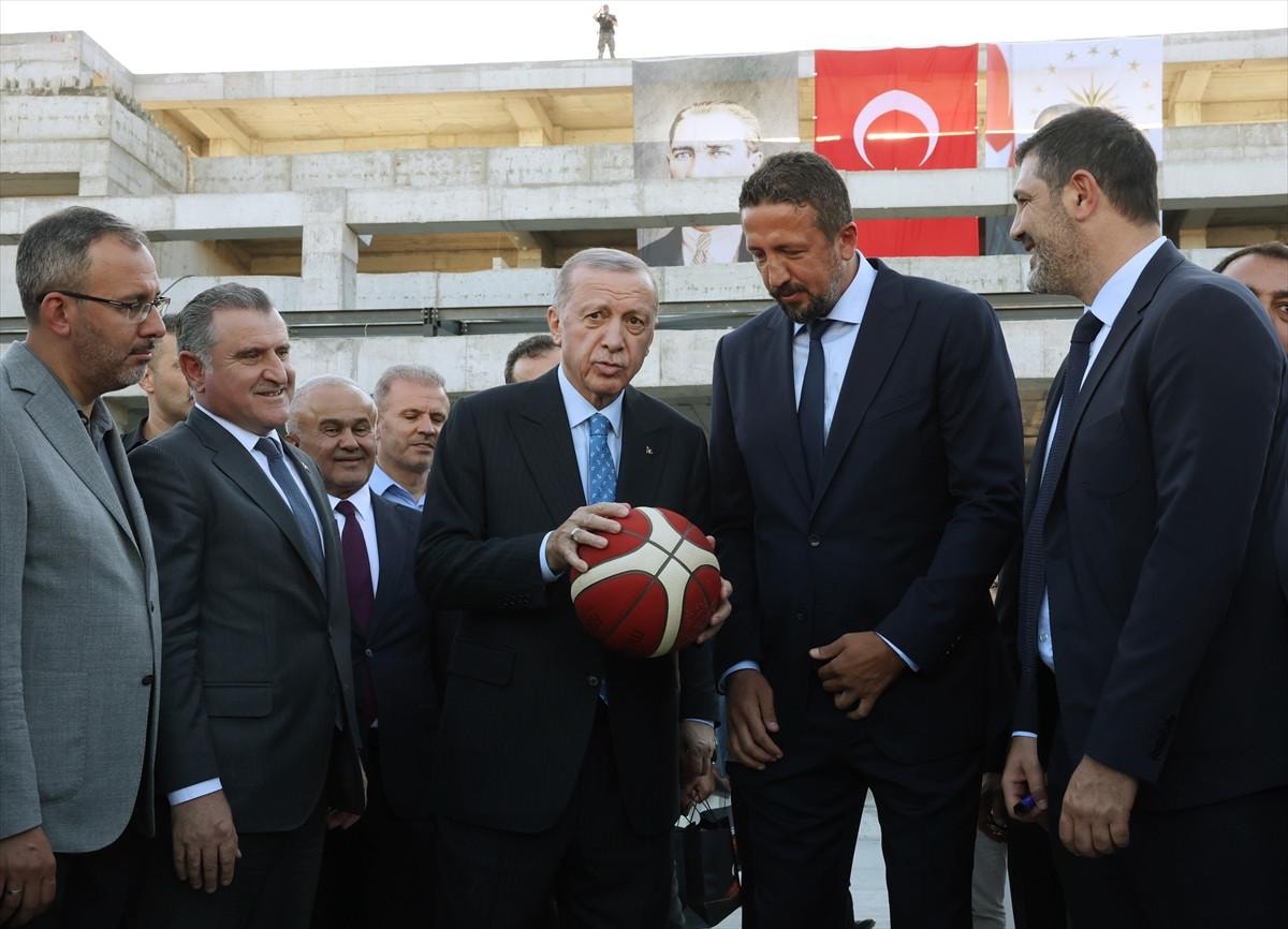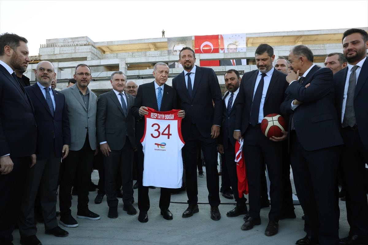 Cumhurbaşkanı Recep Tayyip Erdoğan, İstanbul'da yapimı süren Basketbol Gelişim Merkezi'nin şantiyesinde incelemelerde bulundu.