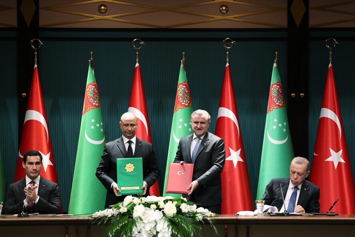 Görüşmenin ardından geçilen törende, Türkiye ve Türkmenistan arasında 13 alanda iş birliği anlaşması imzalandı.