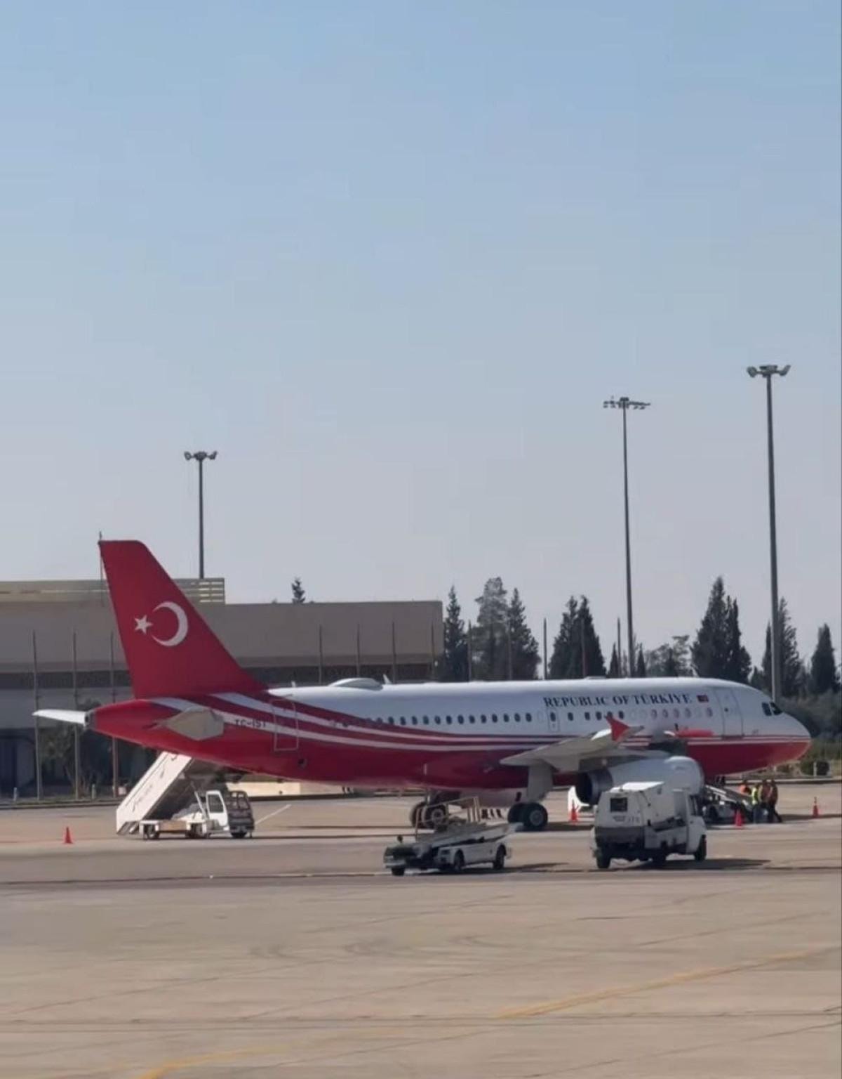 Cumhurbaşkanı Erdoğan tarafından tahsis edilen uçakla Şara ve heyeti, Ankara'ya geldi.