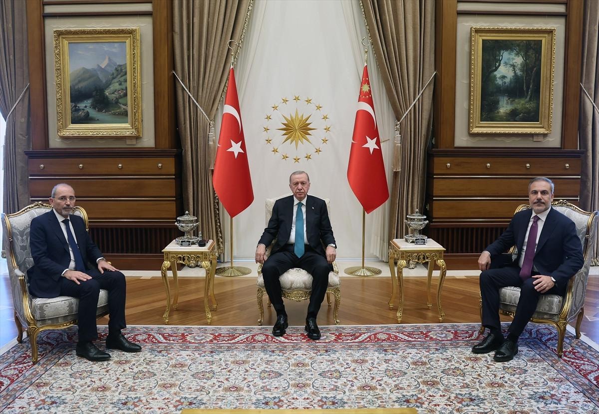 Erdoğan burada Ürdün Dışişleri Bakanı Eymen es-Safedi'yi ağırladı. Toplantıya Dışişleri Bakanı Hakan Fidan da katıldı.