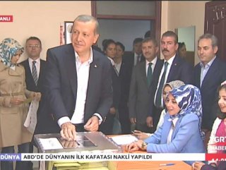 Cumhurbaşkanı Recep Tayyip Erdoğan ve eşi Emine Erdoğan, oy kullanmak üzere Üsküdar'daki Saffet Çebi İlkokulu'na geldi. Okula saat 14.00 sıralarında gelen Erdoğan, görevlilere kimlik yerine pasaportunu verdi.
