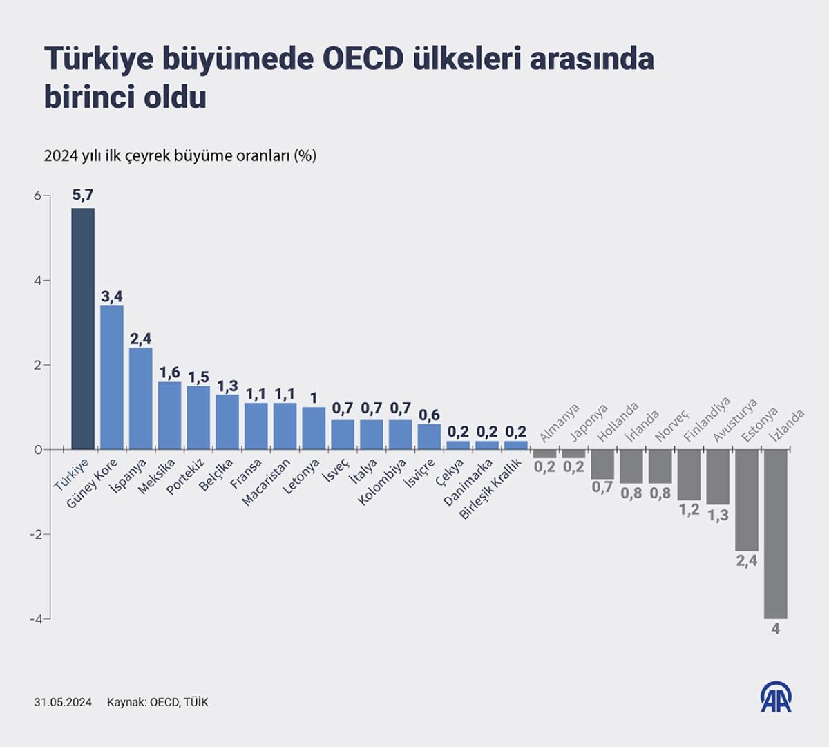 Türkiye, OECD ülkeleri asarında birinci sıraya yükseldi.