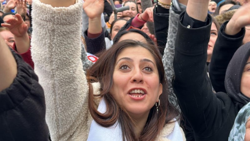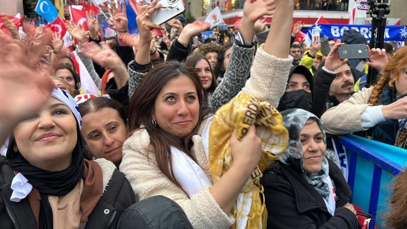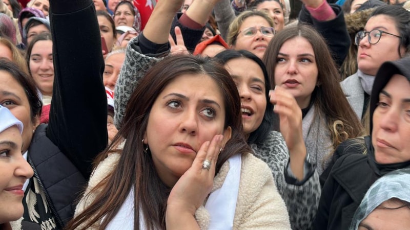 Erdoğan'ın konuşması sırasında sesini duyurmak için yoğun çaba sarf eden Pınar Ersoy, konuşma sonunda çalan “Duyanlara duymayanlara” parçasını gözyaşlarıyla eşlik etti.