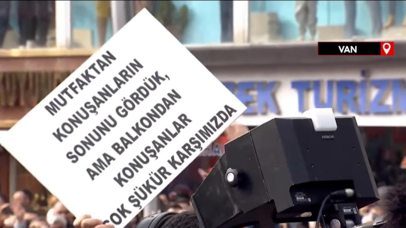 Cumhurbaşkanı Erdoğan'ın okuduğu bir pankartta ise "Mutfaktan konuşanların sonunu gördük ama balkondan konuşanlar çok şükür karşımızda." sözleri yer aldı.