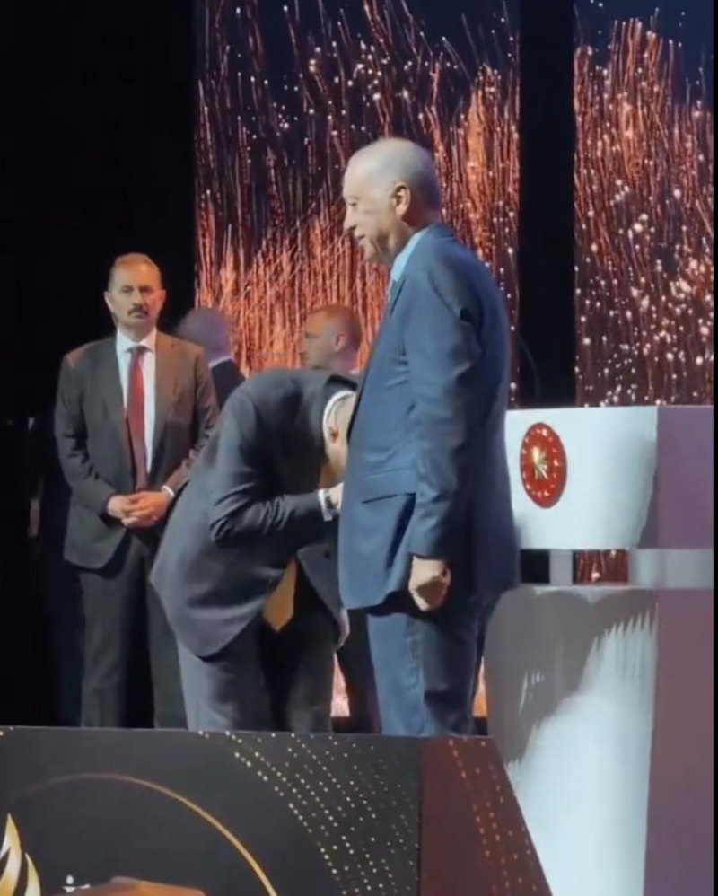 Bilal Erdoğan, İlim Yayma Vakfı ve İlim Yayma Cemiyeti işbirliğiyle Atatürk Kültür Merkezi’nde düzenlenen 4. İlim Yayma Ödülleri Töreni'nde Cumhurbaşkanı Erdoğan'ın elini öptü.
