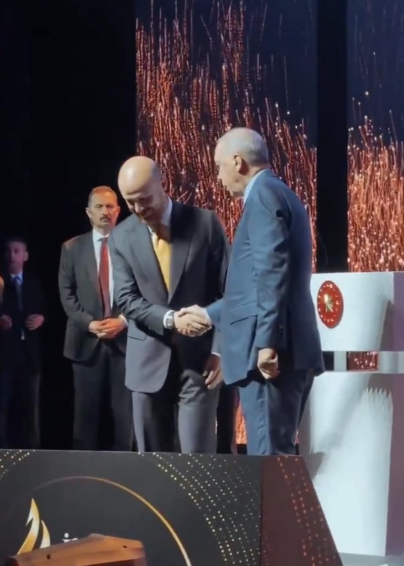 Ödül törenine katılan ve kısa bir konuşma da yapan Cumhurbaşkanı Erdoğan, ardından da Bilal Erdoğan'ı tebrik etti.