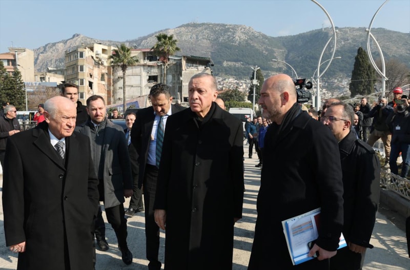 Cumhurbaşkanı Recep Tayyip Erdoğan ve MHP Genel Başkanı Devlet Bahçeli, depremin vurduğu Hatay'ı ziyaret ederek çalışmaları inceledi, yetkililerden bilgi aldı.