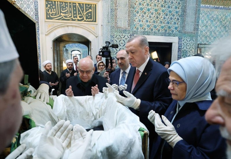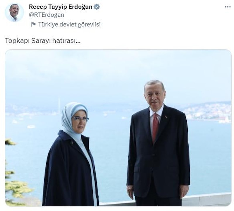 Törene ait paylaşım yapan Cumhurbaşkanı Erdoğan, eşi Emine Erdoğan ile olan karesini, "Topkapı sarayı hatırası" notuyla paylaştı.