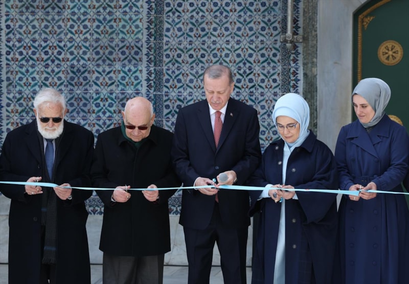 Kurdele kesiminin ardından Cumhurbaşkanı Erdoğan ve beraberindekiler, restorasyonu tamamlanan birimleri gezdi.
