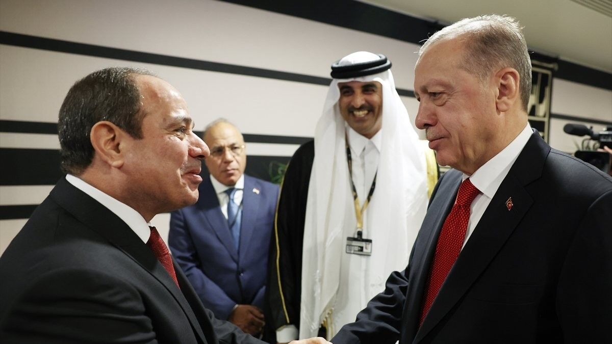 Erdoğan resepsiyonda Mısır Cumhurbaşkanı Abdülfettah Sisi ile de bir araya geldi.